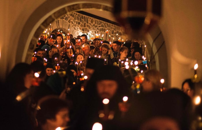 Orthodox Cristians take part in midnight Easter services at the Saint Jovan Bigorski monastery. The Church celebrates Easter according to Julijan calendar.